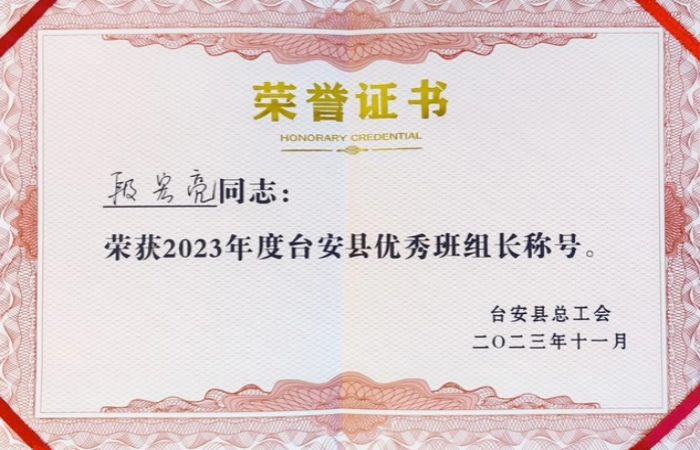 11月24日,公司综合制剂班组被台安县总工会授予“五好班组”荣誉称号,综合制剂班组压片工段长段宏亮同志荣获“2023年度台安县优秀班组长称号”。